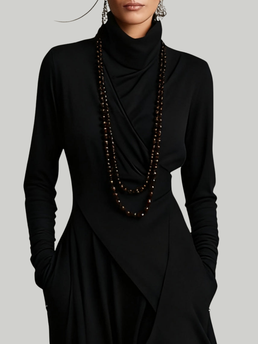 Sandra | Asymmetrischen maxikleid mit hohem Kragen