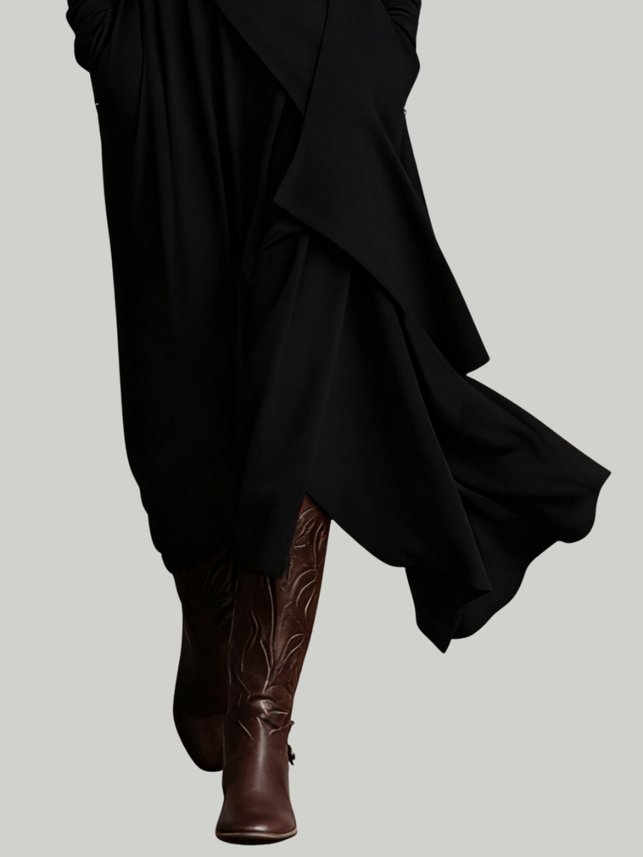 ✔ Asymmetrische Drapierung als künstlerisches Detail, das die Silhouette verlängert