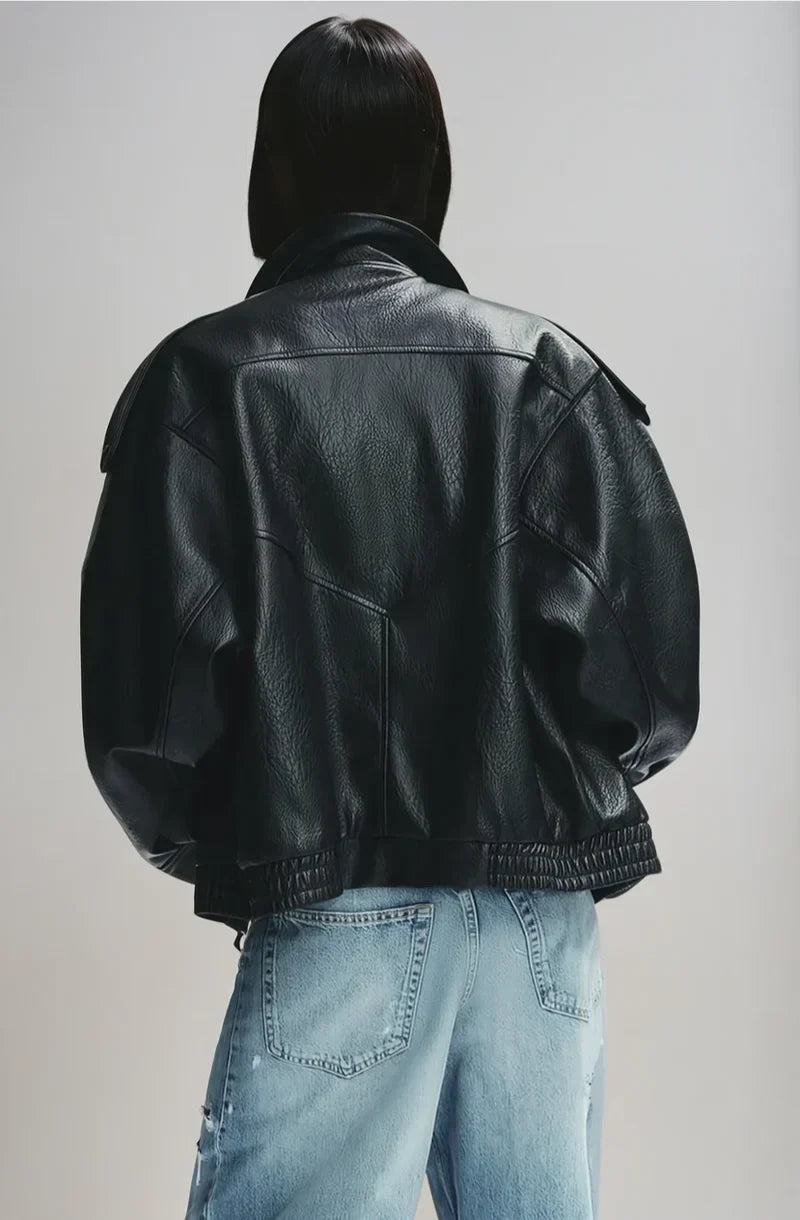 Die ARIA Leather Jacket ist das ultimative Statement-Piece für einen Look, der sowohl chic als auch bold ist. Mit ihrer modernen, strukturierten Passform und dem weichen high-quality faux leather strahlt sie pure Confidence und Klasse aus.