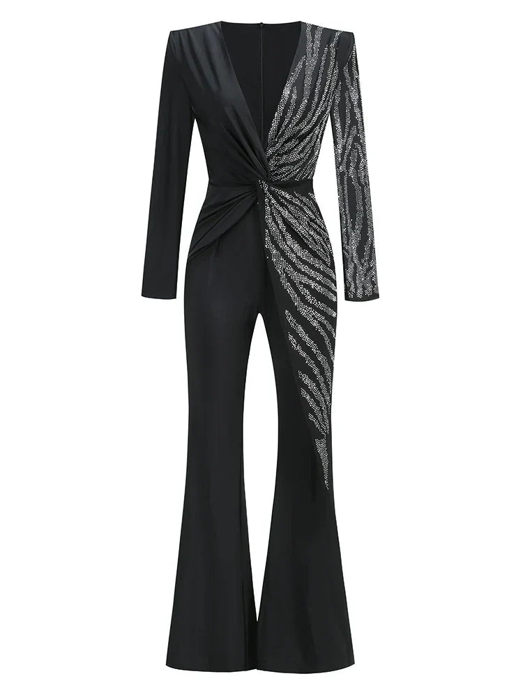 Clara | V-Ausschnitt funkelndes Diamanten-Design Jumpsuit