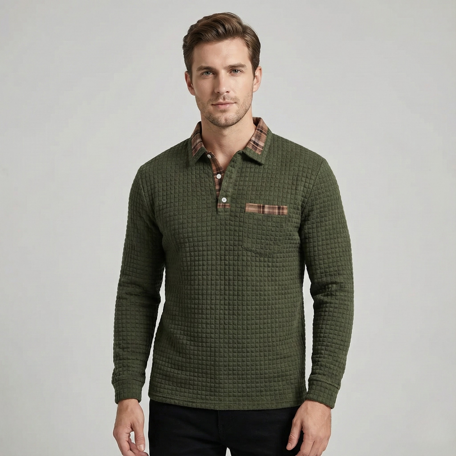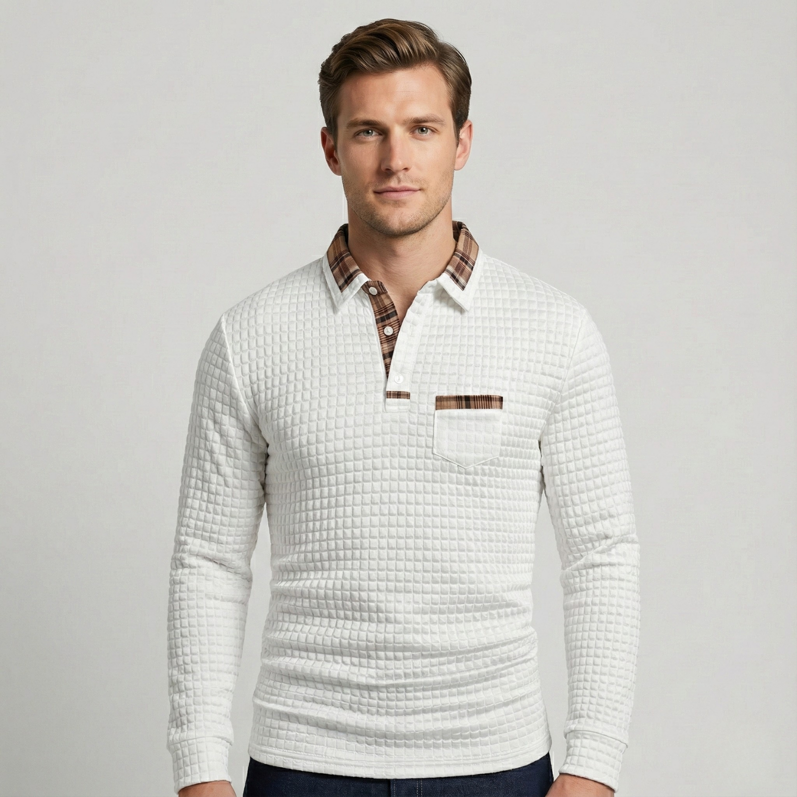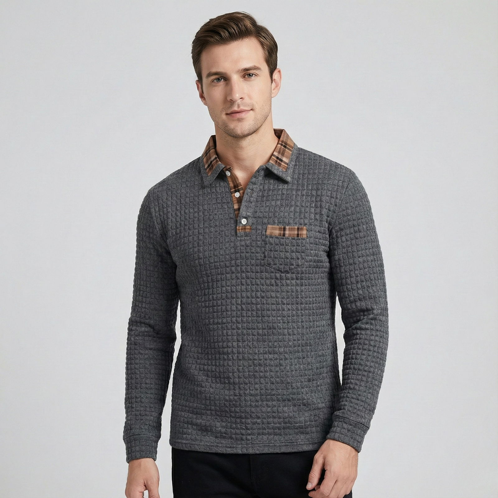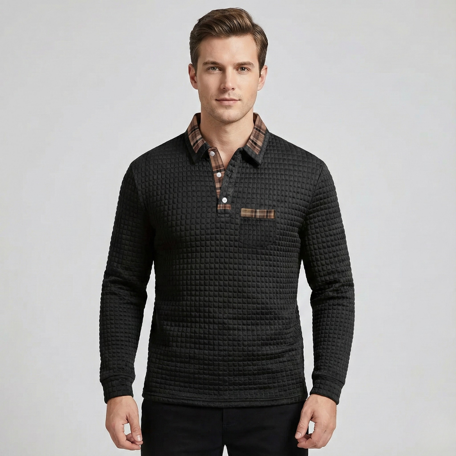 Das Stan | Poloshirt verleiht deinem Alltagslook ein stilvolles Upgrade – ein klassisches Karomuster kombiniert mit einem modernen, klaren Ausdruck. Perfekt für Männer, die eine dezente, geschmackvolle Ästhetik bevorzugen. Ideal für Smart-Casual-Outfits, kühle Morgen oder entspannte Tage im Büro.